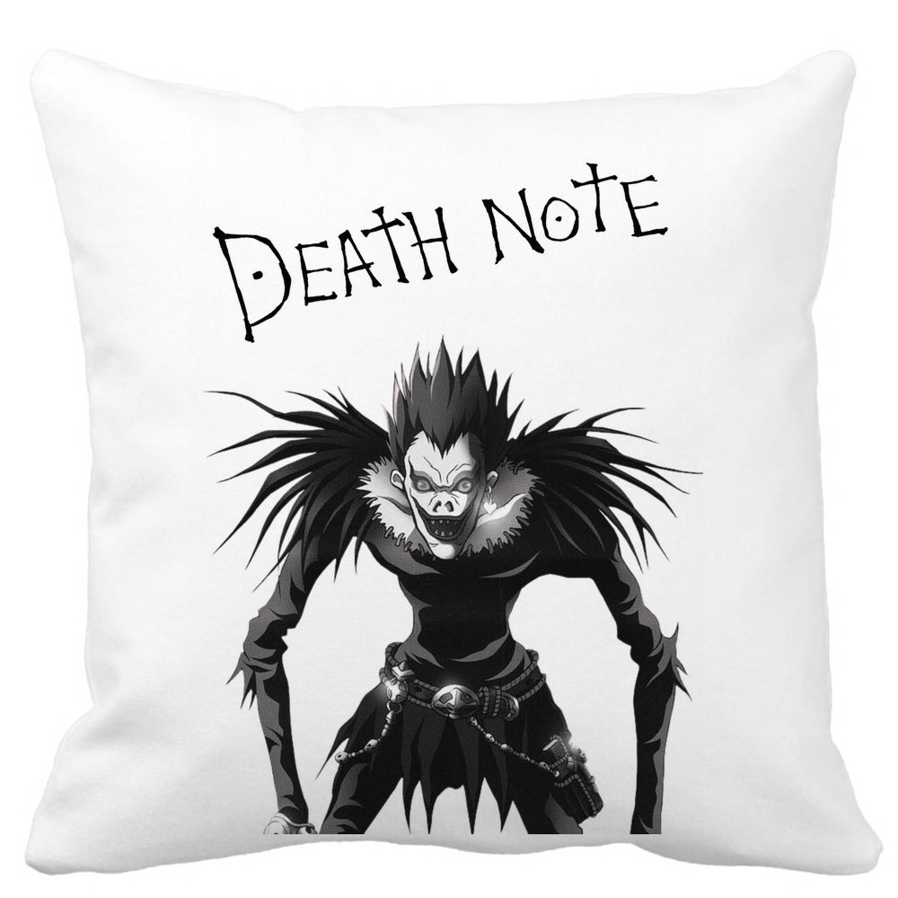 Perna Decorativa cu Deathnote, 40×40 cm, Alba, Mata, Husa Detasabila, Burduf