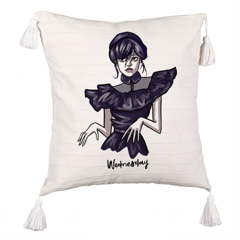 Fii primul care scrii o recenzie pentru „Perna Decorativa cu Franjuri, Model Wednesday Addams Dancing Hands 1, 45×45 cm, Ecru, Cu fermoar”