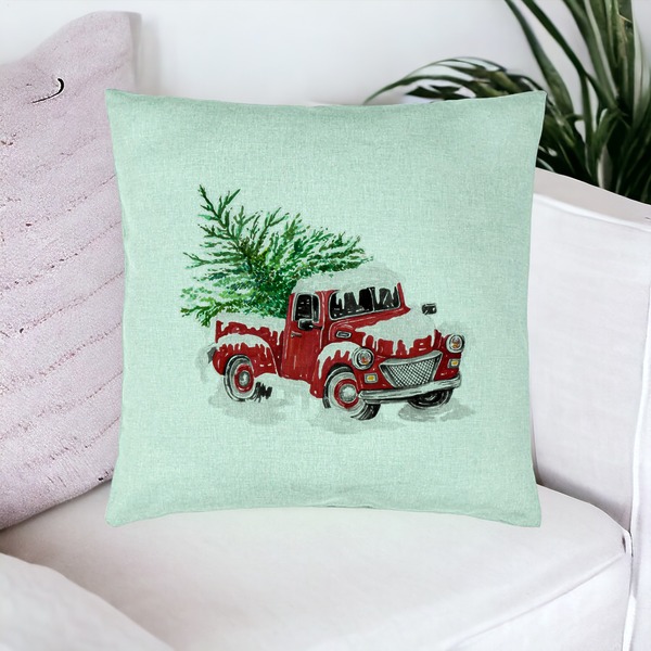 Perna Decorativa cu tematica de Craciun, 1, 40×40 cm, Verde Menta, Husa Detasabila, Burduf