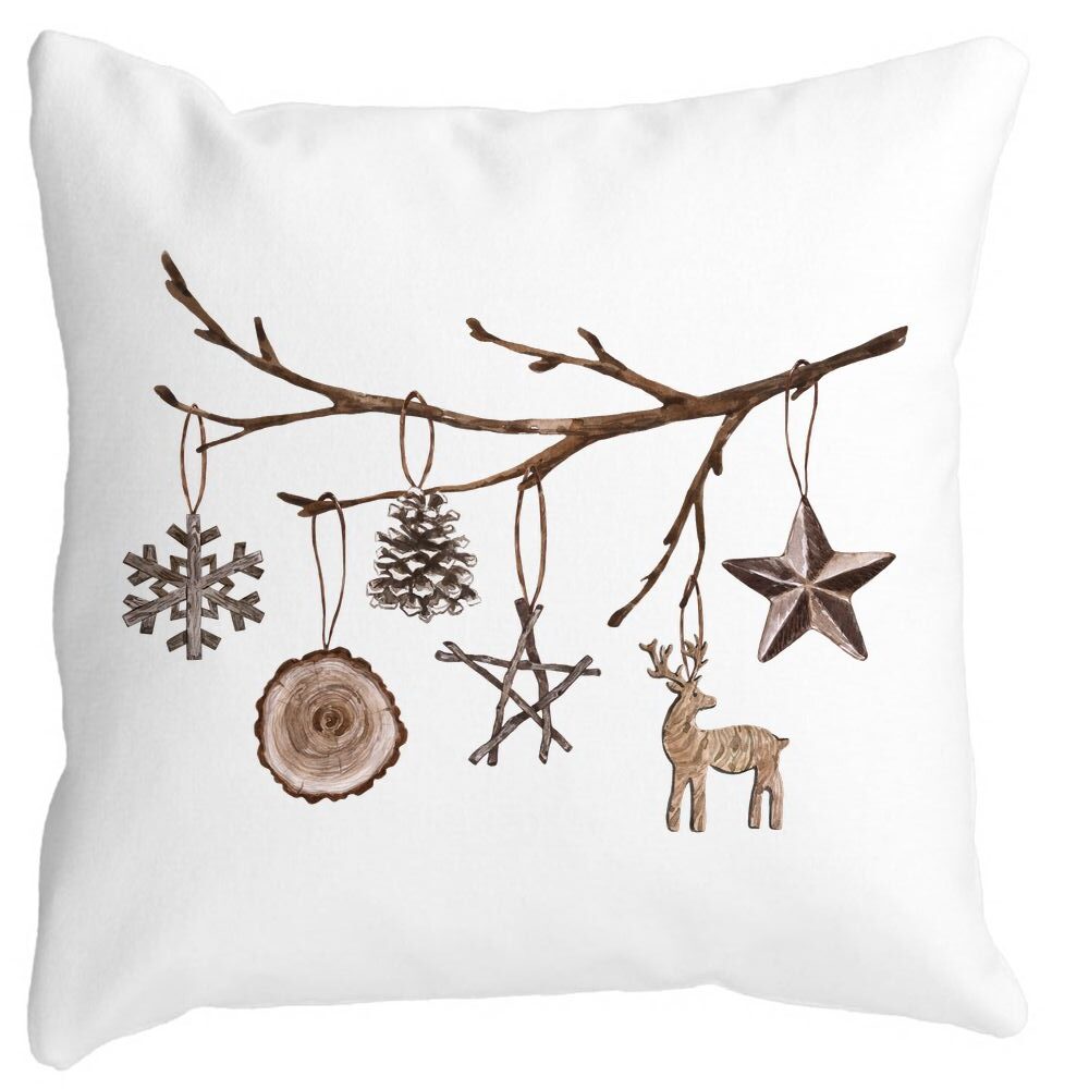 Perna Decorativa cu tematica de Craciun, 16, 40×40 cm, Alba, Mata, Husa Detasabila, Burduf