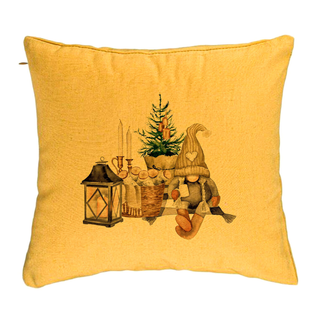 Perna Decorativa cu tematica de Craciun, 19, 40×40 cm, Galben, Husa Detasabila, Burduf