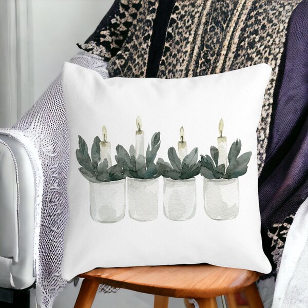 Perna Decorativa cu tematica de Craciun, Lumanari, 3, 40×40 cm, Alba, Mata, Husa Detasabila, Burduf