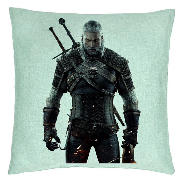 Perna Decorativa cu The Witcher 2, 40×40 cm, Verde Menta, Husa Detasabila, Burduf