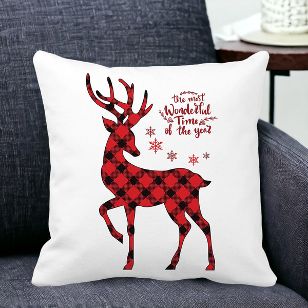 Perna Decorativa de Craciun cu Ren si Text 2, 40×40 cm, Alba, Mata, Husa Detasabila, Burduf