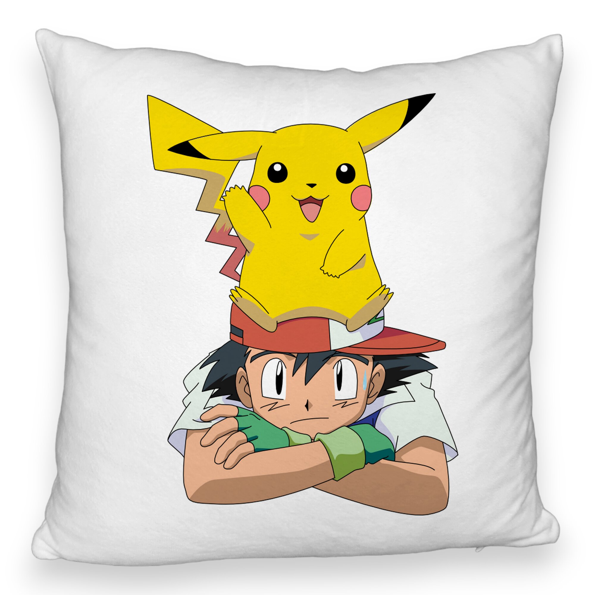 Perna Decorativa Fluffy, Model copii Pikachu Pokemon, 40×40 cm, Alba, Husa Detasabila, Burduf