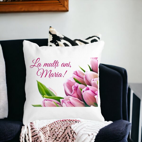 Fii primul care scrii o recenzie pentru „Perna Decorativa La multi ani Maria, 40×40 cm, Alba, Mata, Husa Detasabila, Burduf”