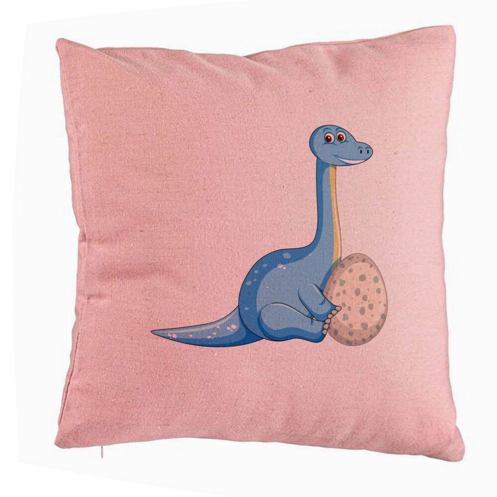 Perna Decorativa, Model copii, Dinozaur cu oua, 40×40 cm, Roz, Husa Detasabila, Burduf