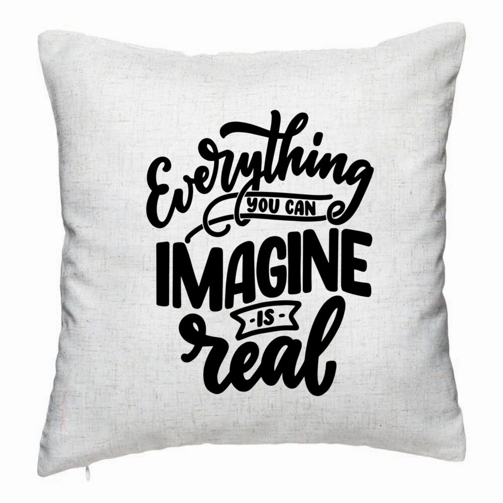 Perna Decorativa, Model Everything You can Imagine is Real, 40×40 cm, Alb Murdar, Husa Detasabila, Burduf