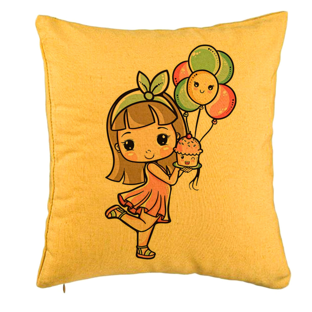 Perna Decorativa, Model Happy Girl, 40×40 cm, Galben, Husa Detasabila, Burduf