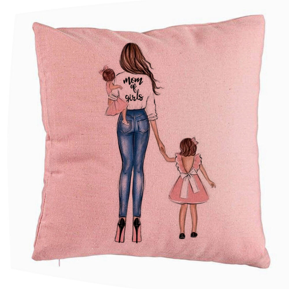 Perna Decorativa, Model Mom of Girls, 40×40 cm, Roz, Husa Detasabila, Burduf