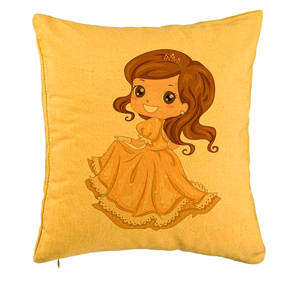 Perna Decorativa, Model Printesa cu Coroana, 40×40 cm, Galben, Husa Detasabila, Burduf