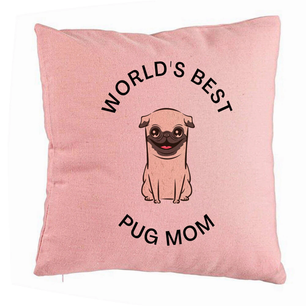 Perna Decorativa, Model World’s Best Pug Mom, 40×40 cm, Roz, Husa Detasabila, Burduf