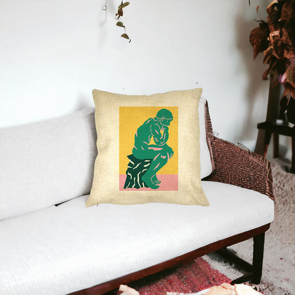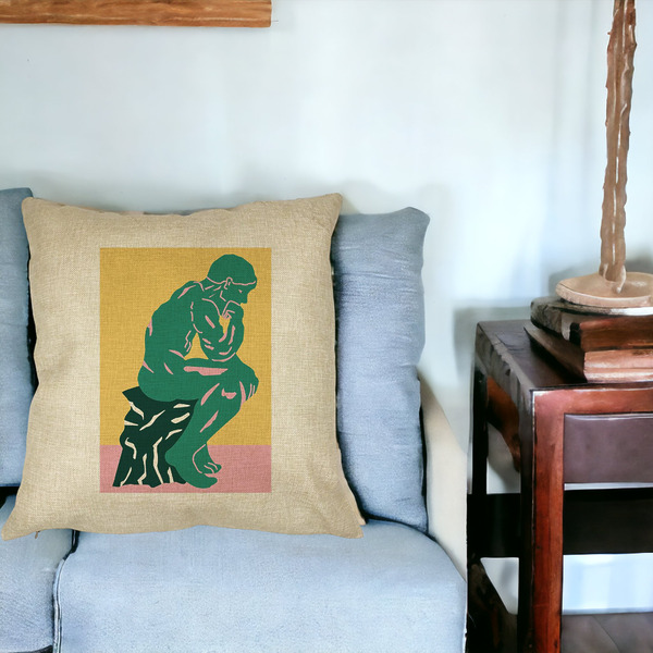 Perna Decorativa Patrata The Thinker, 40×40 cm, Husa Detasabila, Burduf