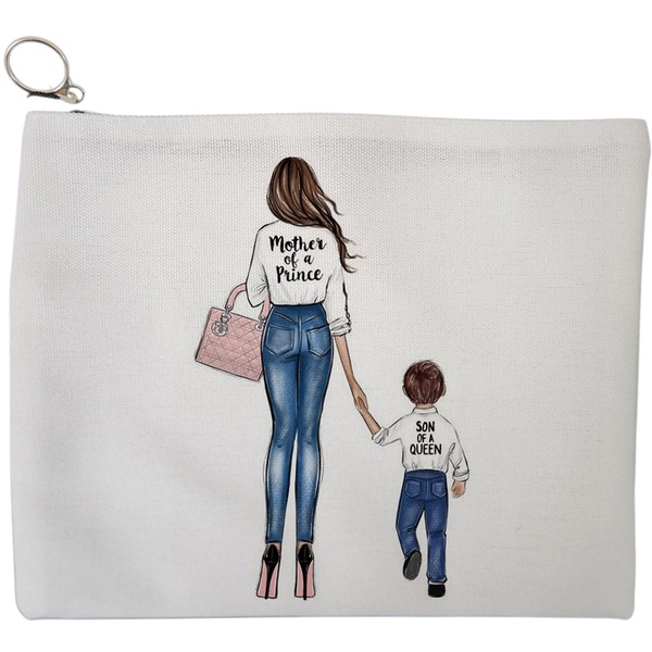 Portfard Cosmetice tip Plic, model Mother of a prince, 23×18 cm, Alb, BEKZ®